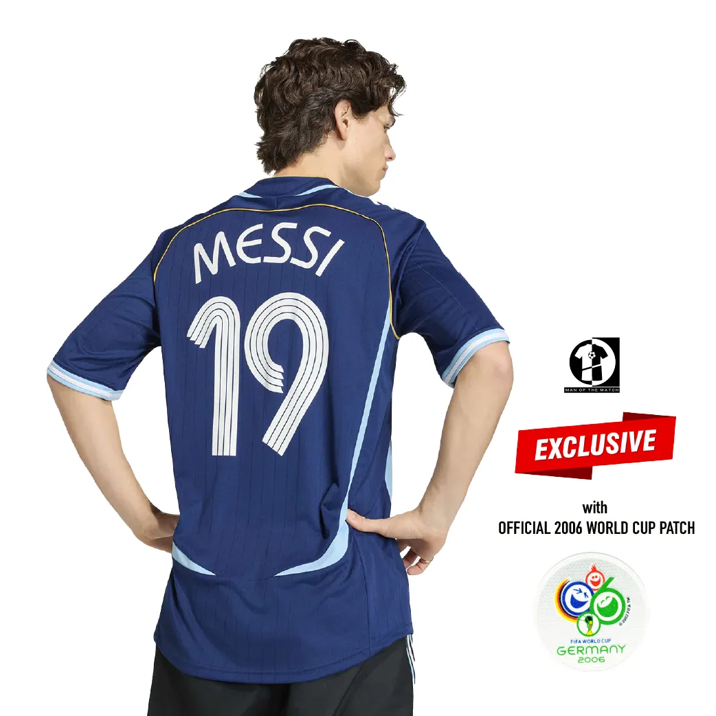 Order contains – 1x Argentina ’06 World Cup Reissue Away Shirt – Messi #19 + Official 2006 World Cup sleeve patch
