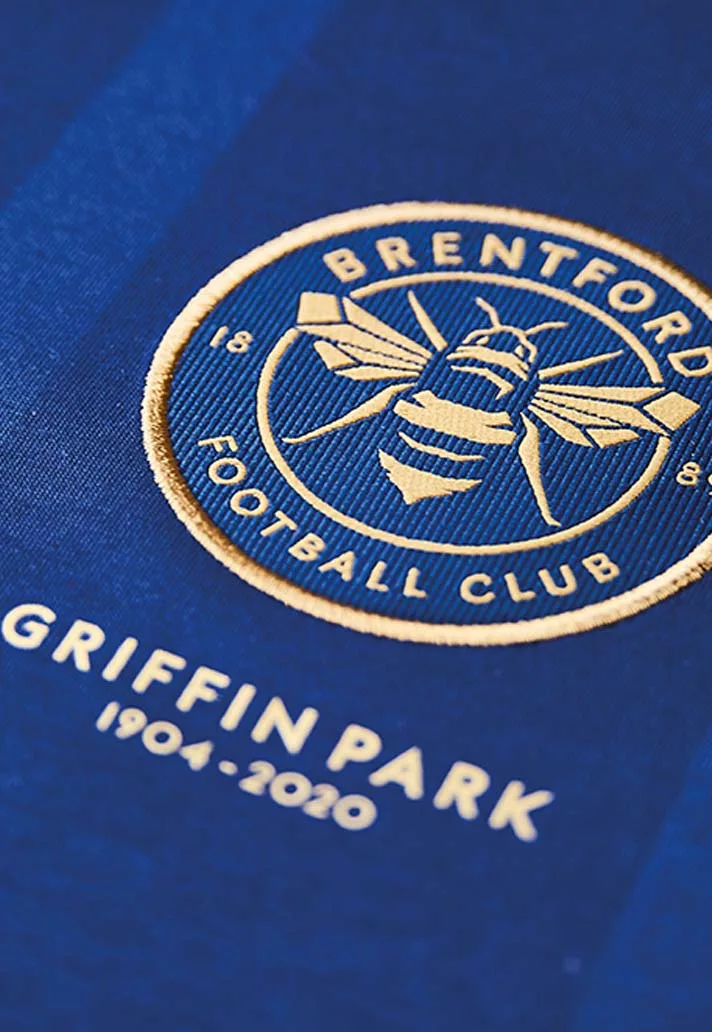 Special edition third shirt released to commemorate Brentford’s final season at Griffin Park, the club’s home for 116 years. The design features a sleek “Umbra” brown and gold colorway, a sophisticated palette chosen to honor the club’s historic past as they prepared to move to the Gtech Community Stadium. Under Thomas Frank, the Bees played some of the most attractive football in the Championship, led by the prolific “BMW” frontline of Said Benrahma, Bryan Mbeumo, and Ollie Watkins, as the side reached the Play-Off Final in a season that bridged the gap between heritage and a bright Premier League future.