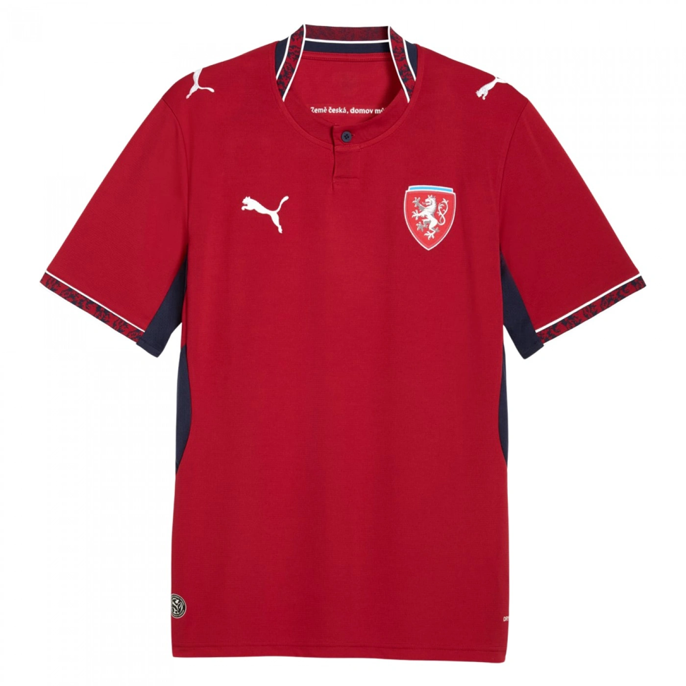 Czechia’s Home Kit honors the heroes of ’96, a team that captured the world’s imagination. Proud nods to the iconic double-tailed lion are paired with silver detailing for a design that celebrates the courage, unity, and pride behind the legendary campaign. Designed for the fans, the Replica jersey delivers the same match-worn look in a casual silhouette, with details and materials suited for both game day and everyday wear.