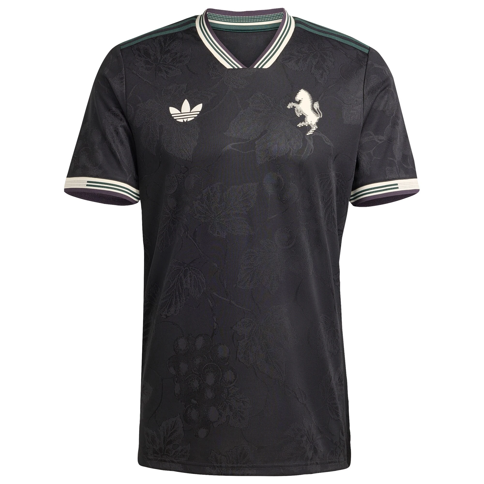 Raise a glass to your football heroes in a Juventus authentic jersey that pays tribute to Piedmont’s wine-making tradition. Standing out from black colours, a heat-applied adidas Trefoil and classic club badge join subtle, vineyard-inspired graphics to produce an understated, elegant look. Part of the kit players wear on the road, this lightweight shirt will help you put in vintage on-field performances.