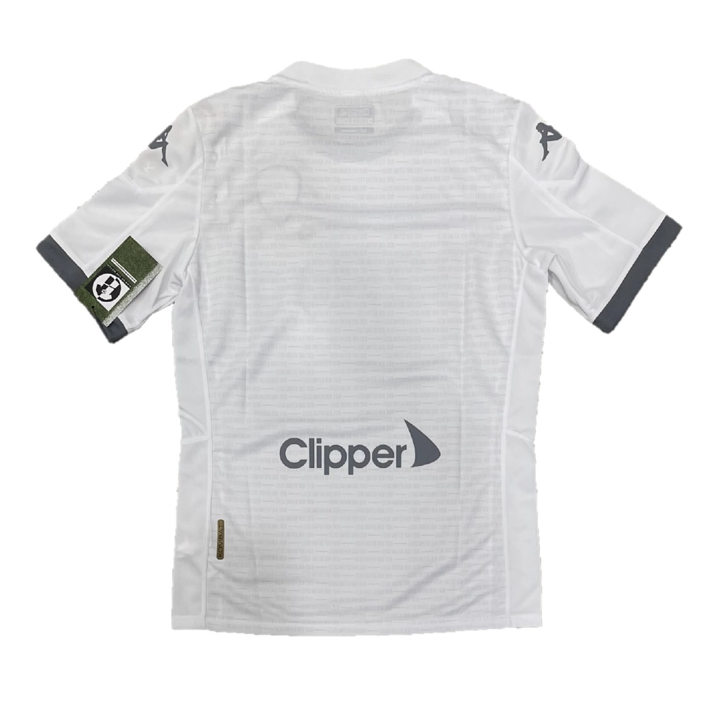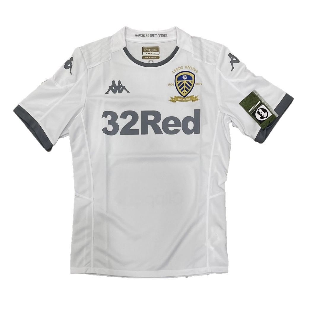 Home shirt released to celebrate Leeds United’s 100th anniversary, worn during the momentous season that saw the club finally secure promotion back to the Premier League as Championship winners. The design features a classic all-white aesthetic with a unique gold-embroidered Centenary crest, marking 100 years since the club’s formation in 1919. Under the legendary management of Marcelo Bielsa, this kit became an instant icon as the “Bielsa-ball” era reached its pinnacle, led by the tireless leadership of Liam Cooper and the clinical finishing of Patrick Bamford.