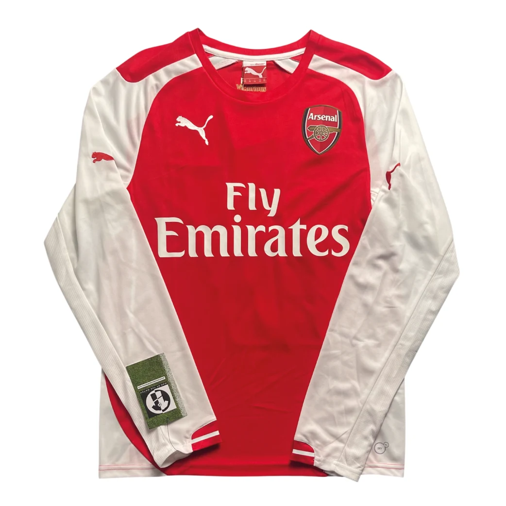 Home shirt as worn during a triumphant 2014/15 campaign that saw Arsenal successfully defend their FA Cup title with a dominant 4-0 victory over Aston Villa at Wembley. The design features the iconic “Victory Red” body and white sleeves, characterized by a sleek, modern silhouette and a bold “tight-fit” aesthetic that defined Puma’s entry into North London. Under the enduring management of Arsène Wenger, this shirt was graced by the explosive debut season of Alexis Sánchez and the creative mastery of Mesut Özil, famously worn as the Gunners secured a second consecutive trophy and a third-place Premier League finish, signaling a period of renewed silverware for the club.