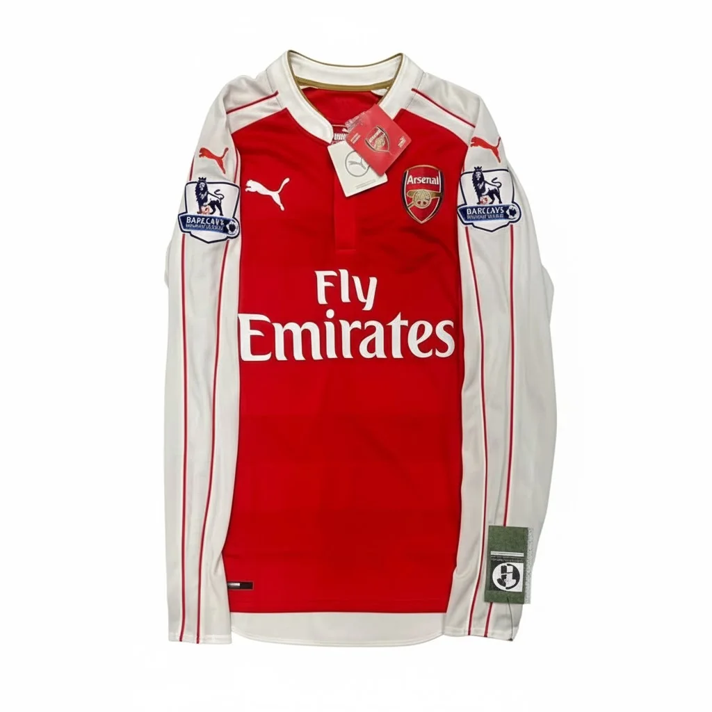 Home shirt as worn when the Gunners secured a 2nd-place finish in the Premier League, their highest league position in over a decade. The campaign was defined by the incredible creative form of Mesut Özil, who recorded a staggering 19 assists, falling just one short of the all-time record. Memorable moments in this kit include a dominant 3-0 victory over Manchester United and a dramatic last-minute winner against Leicester City at the Emirates, as Arsène Wenger’s side remained in the title hunt until the final weeks of the season.