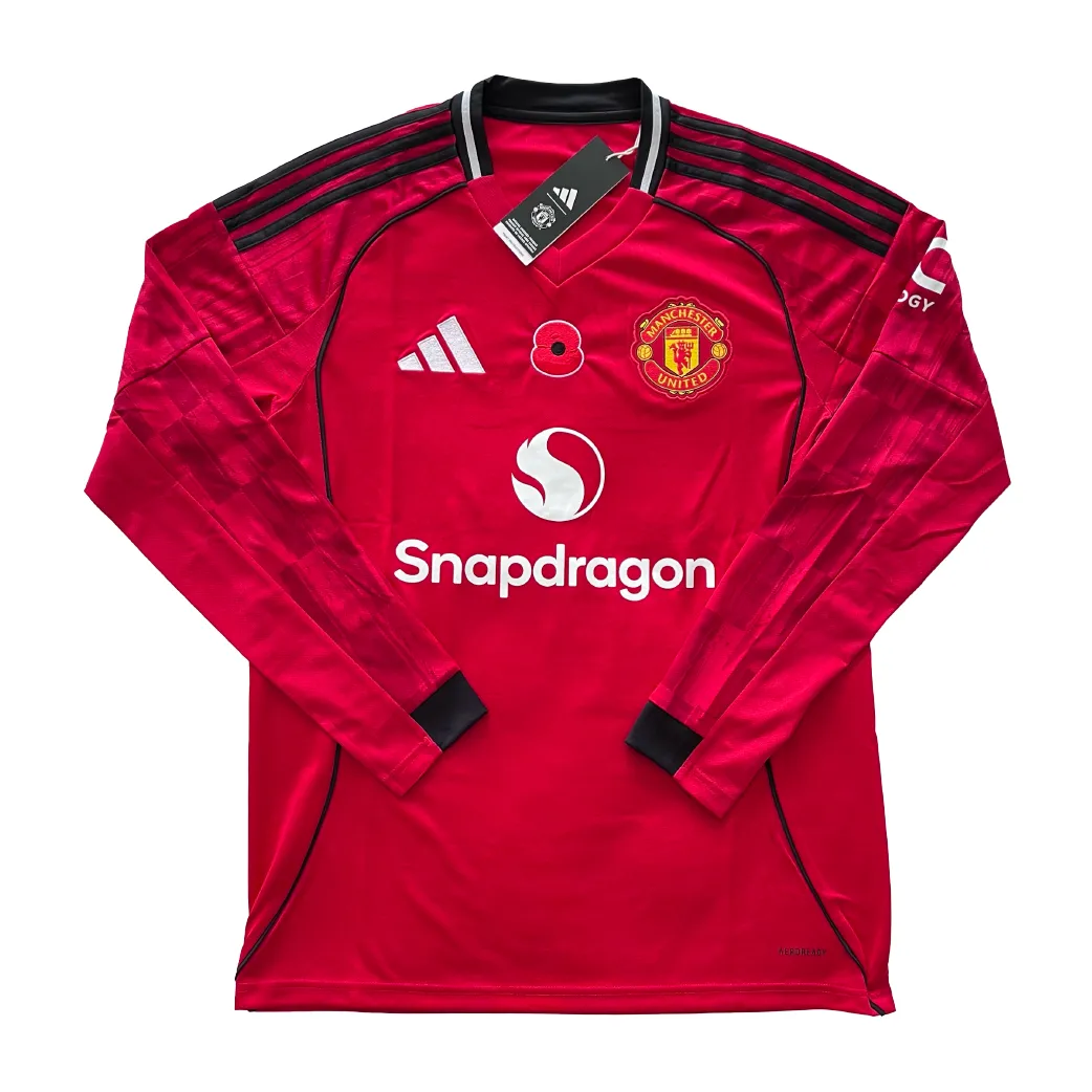 [Long Sleeve] Manchester United 2025/26 Home Shirt With Poppy