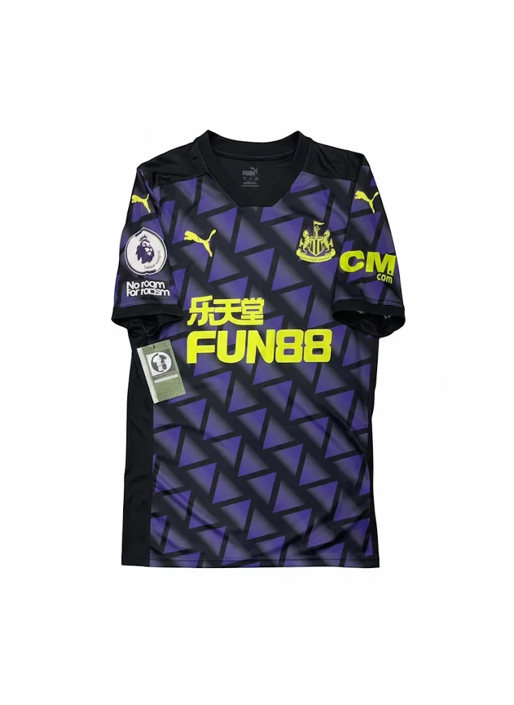 Third shirt as worn as the Magpies secured their Premier League status under Steve Bruce, finishing the campaign in 12th place. The eye-catching “Prism Violet” design features a unique digitized pattern inspired by the steelwork of the Tyne Bridge, connecting the kit to the city’s iconic landscape. The season was highlighted by the goalscoring impact of Callum Wilson following his summer arrival, alongside the flair of Allan Saint-Maximin and the emergence of Joe Willock, who equaled a club record by scoring in seven consecutive league games.