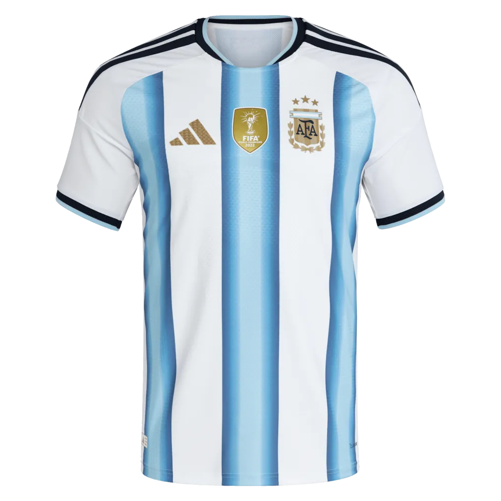 The Argentina 26 Home Authentic Jersey is more than just a piece of clothing; it’s a celebration of the nation’s football legacy. Wherever you wear this jersey with its prestigious third star, it embodies the spirit of champions. Designed for action, the jersey features Climacool+ technology. ADVANCED COOLING. Superior engineering and advanced materials unite for a cool, dry and distraction-free performance. The special collar construction adds a classic touch, while body mapping creates a tailored, locked-in fit. The transfer knit jacquard fabric and Performance materials help to transfer heat through the garment and provide ventilation. With its bold 3-Stripes and team crest, this adidas jersey is a symbol of pride and excellence. Whether you’re on the pitch or cheering from the stands, it expresses your passion for the Argentinian national team.