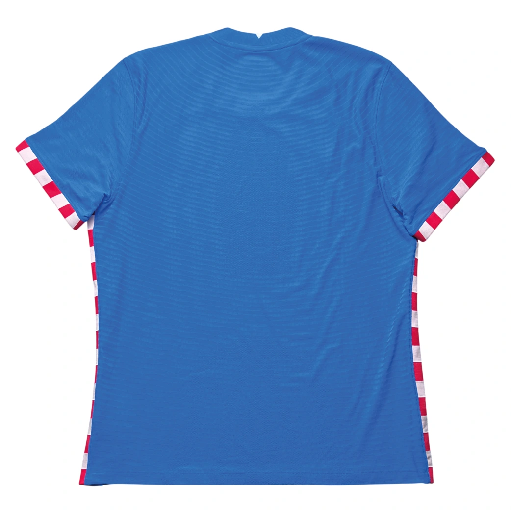 A vibrant third shirt released during the 2021/22 campaign as the defending champions looked to maintain their grip on Spanish football. The design features a striking “Photo Blue” base with “Copa Crimson” accents, specifically celebrating the 75th anniversary of the club’s name change to “Club Atlético de Madrid” in 1947. Graced by the grit of Luis Suárez and the technical flair of João Félix, this kit’s clean aesthetic—complemented by a special commemorative crest—beautifully bridges the gap between the club’s mid-century heritage and its modern status as a global powerhouse.