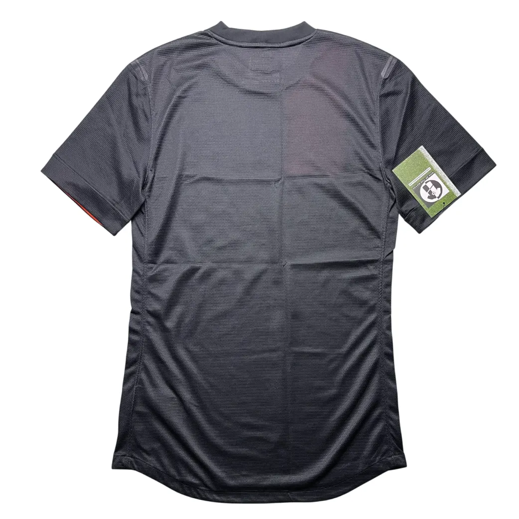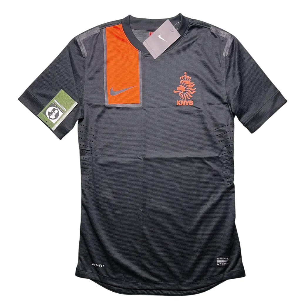 Sophisticated away shirt worn during the Euro 2012 campaign, a tournament that saw the “Oranje” arrive as World Cup finalists and one of the world’s most feared attacking sides. The design features a striking “Blackout” aesthetic with a vibrant “Electric Orange” vertical stripe on the right side, symbolizing the creative spark and explosive energy of Dutch football. Graced by legendary figures such as Robin van Persie, Wesley Sneijder, and Arjen Robben, this kit’s minimalist approach and sharp contrast made it an instant classic, bridging the gap between national pride and high-performance engineering.