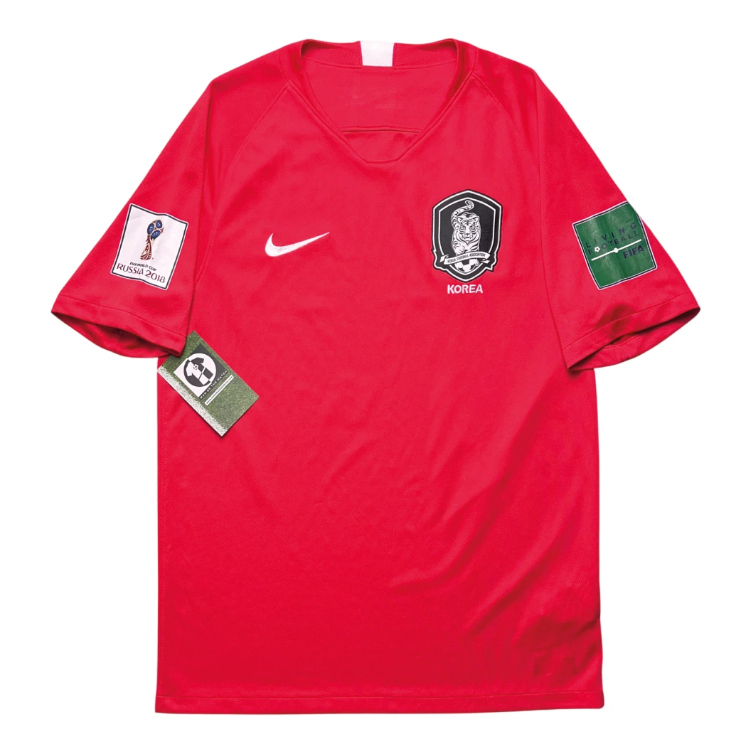 An iconic home shirt worn during the 2018 FIFA World Cup, a tournament defined by South Korea’s historic “Miracle of Kazan” victory over defending champions Germany. The design features a vibrant “Global Red” base, a minimalist and modern departure from previous patterns that emphasizes the speed and energy of the “Taegeuk Warriors.” Graced by the clinical finishing of Son Heung-min and the breakout talent of Cho Hyun-woo, this kit represents a pinnacle moment of national pride and remains a highly sought-after piece for collectors of Asian football history.