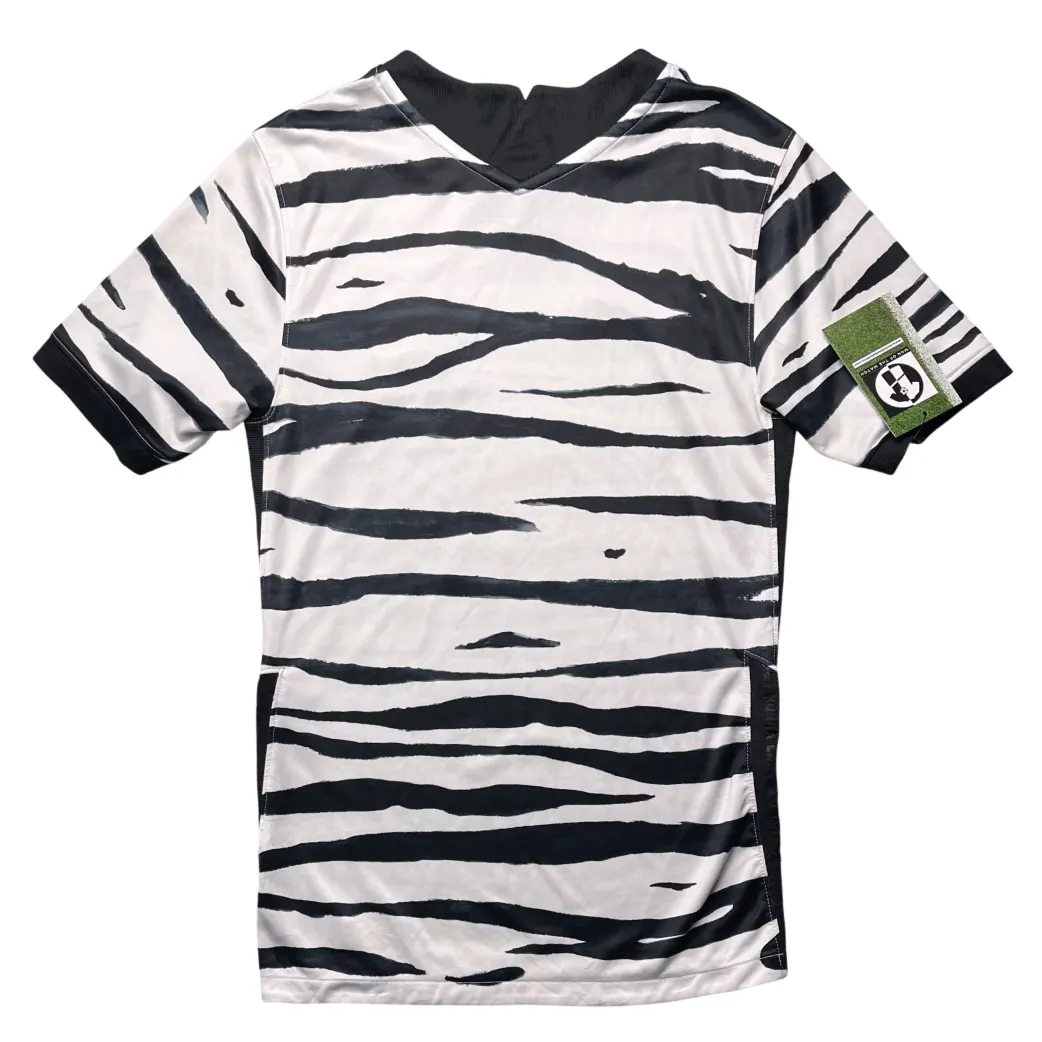 A groundbreaking away shirt that redefined the “performance-meets-art” category, released ahead of the 2022 World Cup qualifying cycle. The design features a fearless “White Tiger” aesthetic, utilizing hand-painted tiger stripes across the body that represent the strength, courage, and ferocity of the Taegeuk Warriors. Graced by the world-class talent of Son Heung-min during his peak years in North London, this kit’s bold monochrome palette and gold accents transformed it into a global streetwear phenomenon, bridging the gap between national identity and high-fashion luxury.
