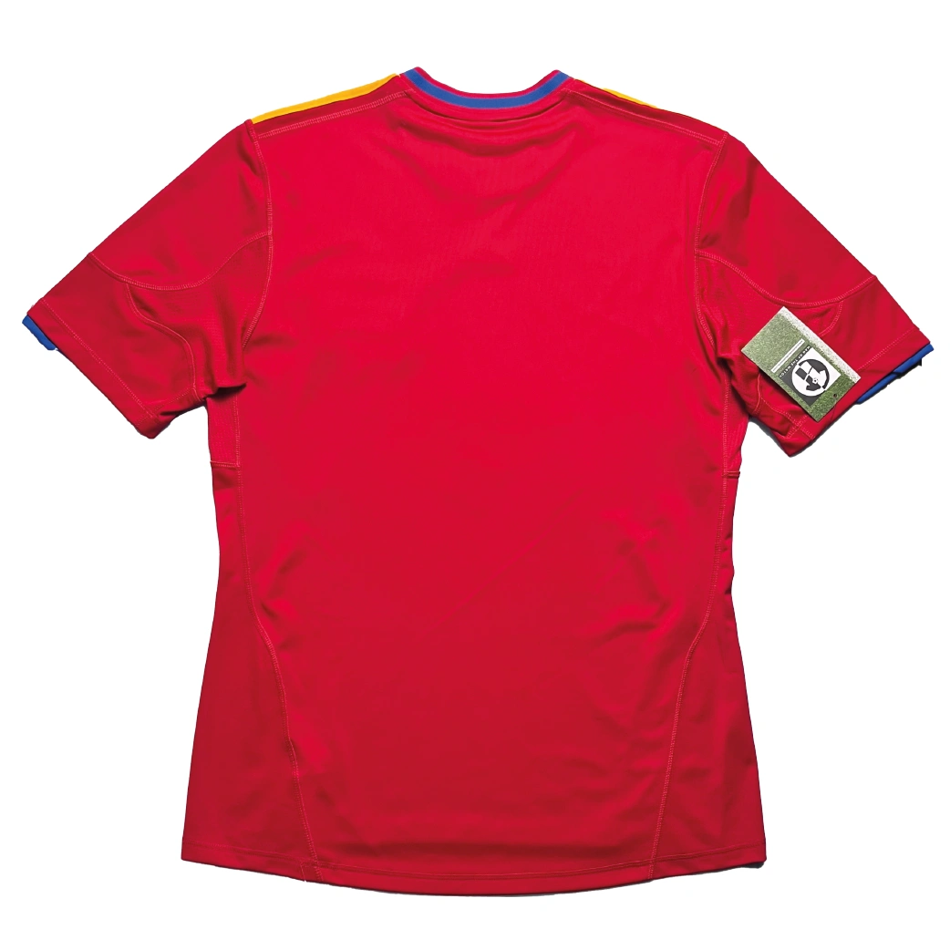 Home shirt as worn by the newly crowned World Champions in the immediate aftermath of their historic 2010 FIFA World Cup triumph. This “Victory Edition” features the traditional red and yellow of La Roja, updated with the prestigious gold star embroidered above the national crest to commemorate their first-ever star. Worn during the beginning of Spain’s reign as world leaders, this shirt represents the peak of the tiki-taka era as Vicente del Bosque’s side, featuring legends like Xavi, Iniesta, and David Villa, dominated the international stage as the undisputed kings of football.